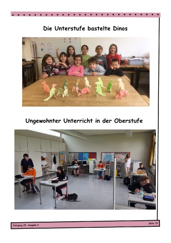 Die Unterstufe bastelte Dinos Ungewohnter Unterricht in der Oberstufe